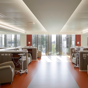Multiple EHD Award winner the Oak Cancer Centre (OCC) for the Royal Marsden Hospital (RMH) has been funded from charitable donations raised by the Royal Marsden Cancer Charity. The building is located in the existing RMH campus in Sutton, south London.